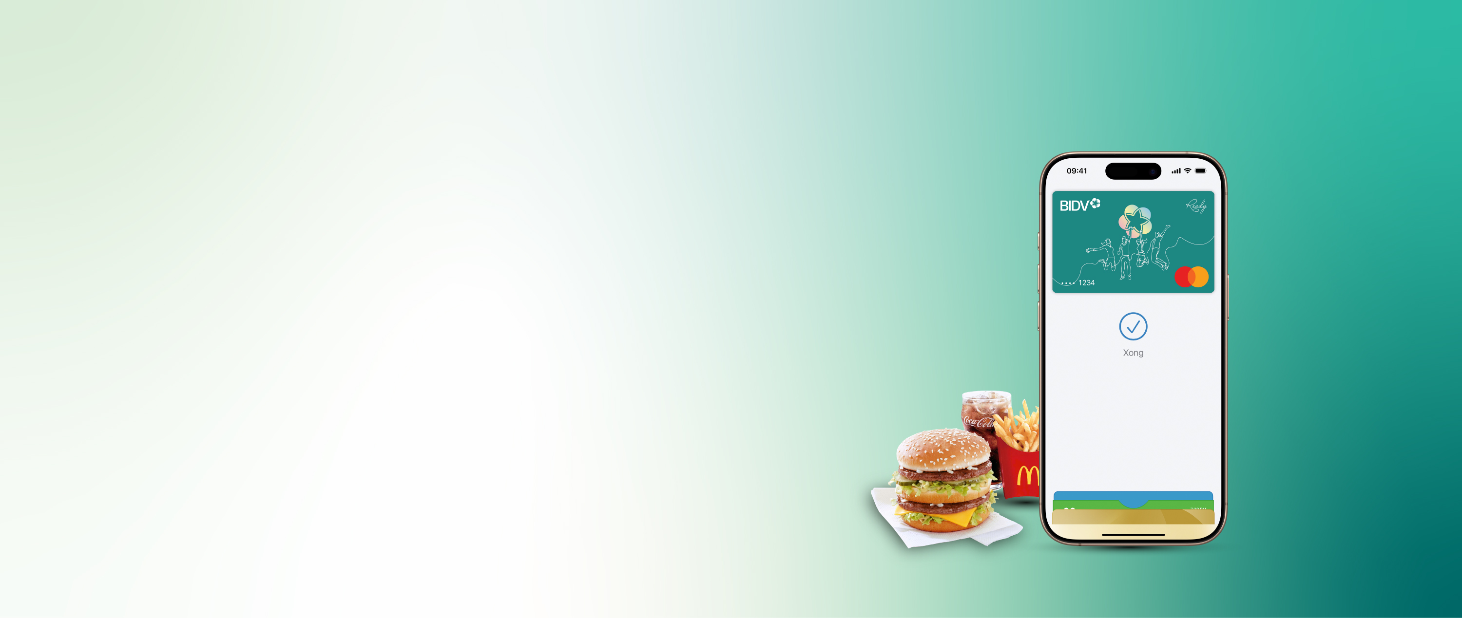 - Giảm 50% tối đa 70,000 VND cho đơn hàng từ 100,000 VND khi thanh toán bằng thẻ BIDV qua Apple Pay trên thiết bị Payoo POS ở các cửa hàng của McDonald’s trên toàn quốc.