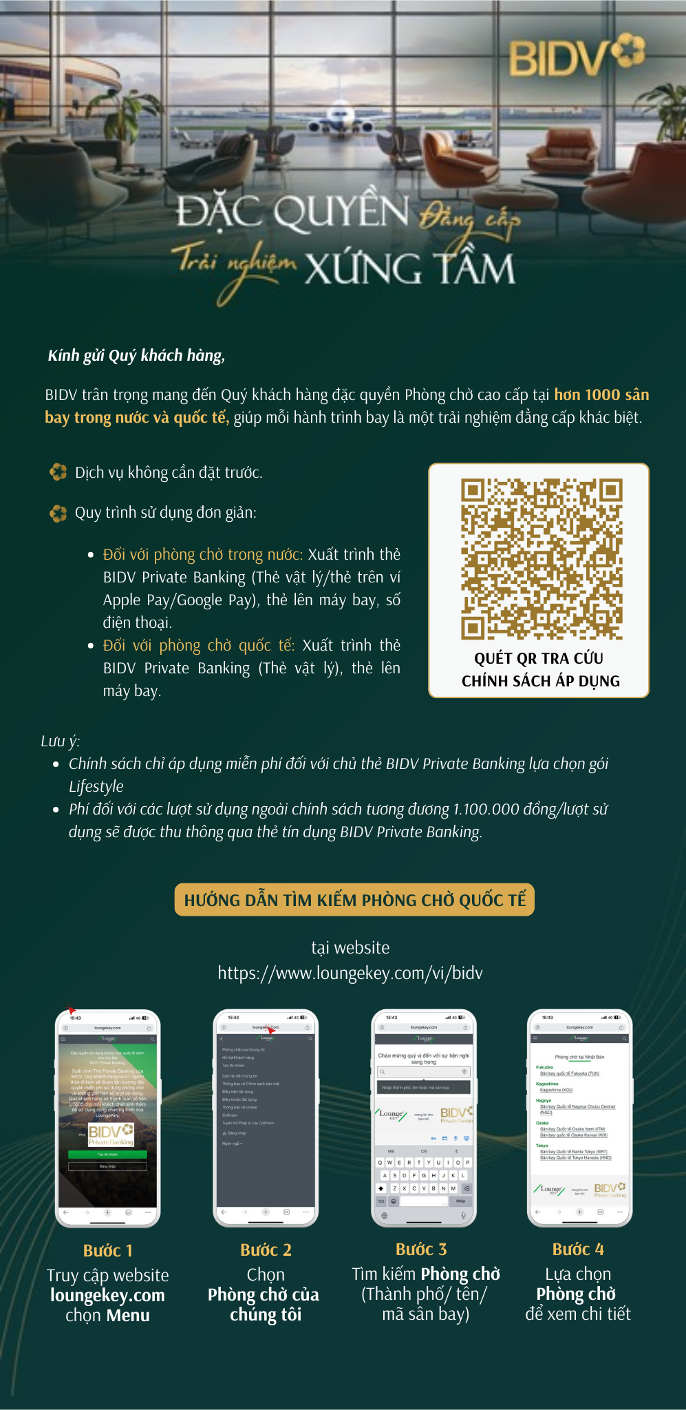 Phí sử dụng dịch vụ Phòng chờ quốc tế tại đây.