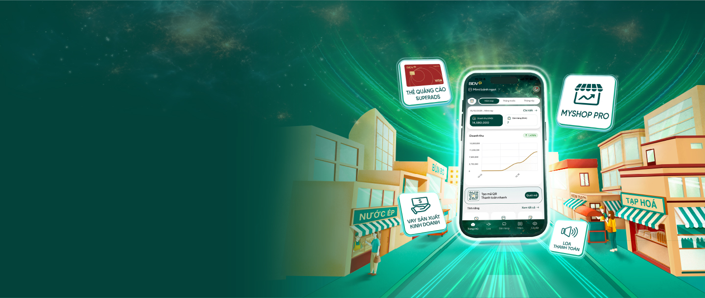 New BIDV customers or existing BIDV customers (*) who link their BIDV account for the first time with a payment speaker or sales management software and complete at least 10 sales revenue transactions credited to their BIDV account within the first month of account opening will receive VND 100,000.