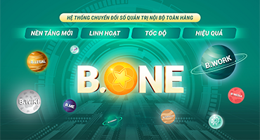 B.One - Hệ thống Quản trị nội bộ toàn hàng - là Không gian làm việc số của BIDV, đánh dấu một bước tiến mới trong hành trình chuyển đổi số của BIDV. Đây là nền tảng do chính đội ngũ ngân hàng phát triển, thể hiện tinh thần làm chủ công nghệ và khát vọng đổi mới không ngừng. Được định hình như “siêu ứng dụng văn phòng” của toàn hệ thống, B.One tạo nên một hệ sinh thái thống nhất với sáu không gian chức năng: B.Work; B.Legal; B.Me; B.Service; B.Wiki; B.Media.
