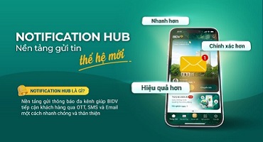 Notification Hub – nền tảng gửi thông báo đa kênh thế hệ mới của BIDV – là giải pháp tối ưu cho việc truyền tải thông tin đến khách hàng qua OTT, SMS và Email với tốc độ vượt trội, độ chính xác cao và khả năng xử lý quy mô lớn. Hệ thống được BIDV phát triển trên nền tảng công nghệ hiện đại, vận hành ổn định, giúp giảm 40–60% thao tác tại Back Office và hỗ trợ xử lý tới 18 triệu tin nhắn/ngày, hướng tới 50 triệu tin/ngày vào năm 2030.
