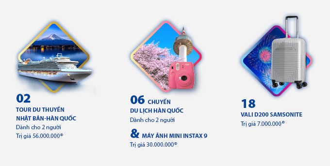 + Cơ hội trúng 02 Tour du thuyền Nhật Bản – Hàn Quốc cho 2 người trị giá 56 triệu đồng;