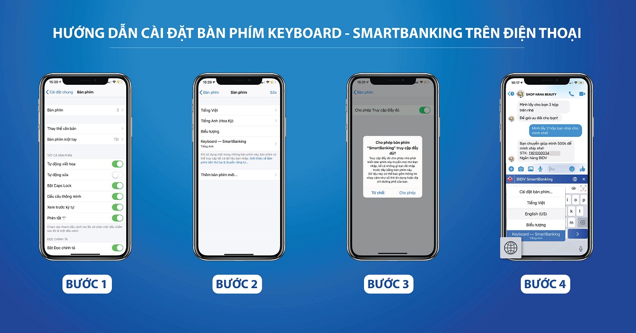 Nhanh chóng, thuận tiện, tải và cài đặt ứng dụng BIDV SmartBanking, kích hoạt ứng dụng BIDV Smartkeyboard ngay hôm nay để tận hưởng trọn bộ tiện ích!