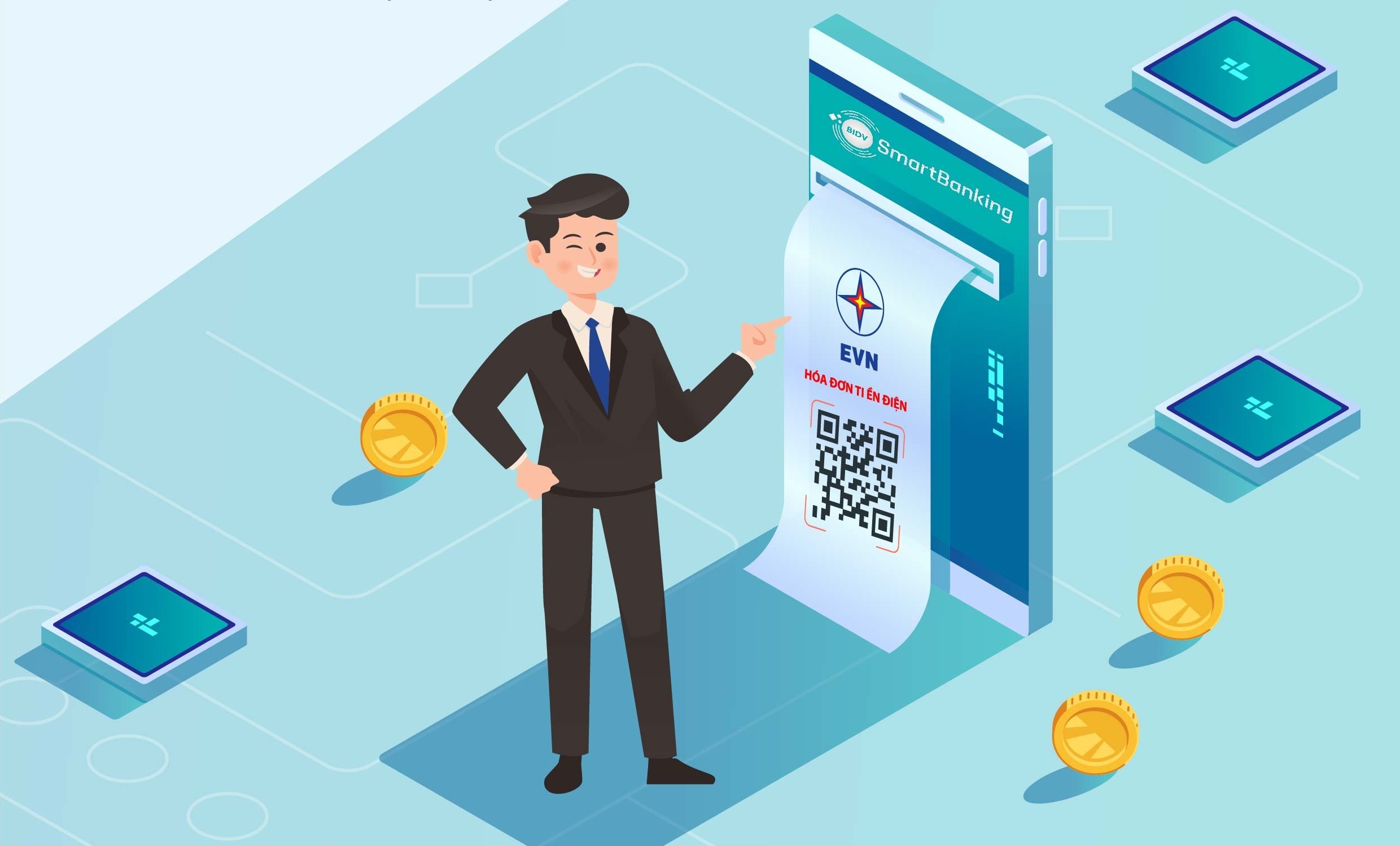 BIDV là một trong các đơn vị tiên phong phối hợp với EVN triển khai thành công giải pháp thanh toán hoá đơn tiền điện với QR code . Việc hợp tác cùng EVN triển khai dịch vụ đã thể hiện cam kết của BIDV trong việc đa dạng hóa kênh thanh toán cho khách hàng, đặc biệt các kênh thanh toán số, và đáp ứng nhu cầu thu hộ đa kênh cho EVN. Với EVN, việc áp dụng rộng rãi dịch vụ “Hóa đơn điện tử ứng dụng QR code” là minh chứng cho việc không ngừng cải tiến, tiếp tục đưa dịch vụ điện đến với khách hàng ngày càng thuận lợi, công khai, minh bạch, trên cơ sở ứng dụng công nghệ hiện đại, góp phần đẩy mạnh việc xây dựng nền kinh tế số.